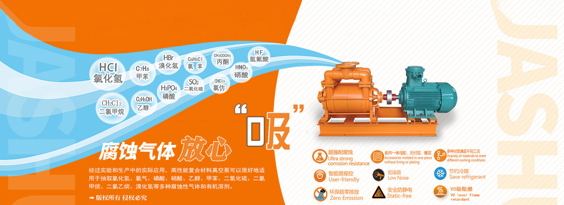 公司獨立研發(fā)的具有自主知識產(chǎn)權的多項專利產(chǎn)品 一耐腐蝕系列水環(huán)式真空泵。